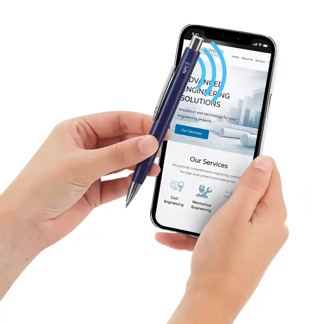 Caneta NFC com corpo de alumínio com acabamento mate.