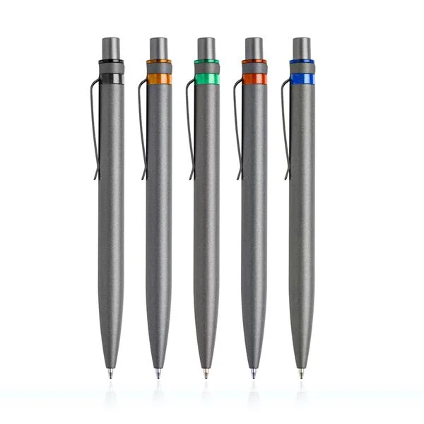 Esferográfica em alumínio reciclado, detalhe colorido