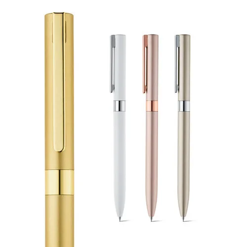 Necessário uma encomenda mínima de 100 Esferográficas Personalizados deste tipo e design. Poderá selecionar de entre as cores disponíveis as quantidades que desejar, desde que perfaçam a quantidade mínima.