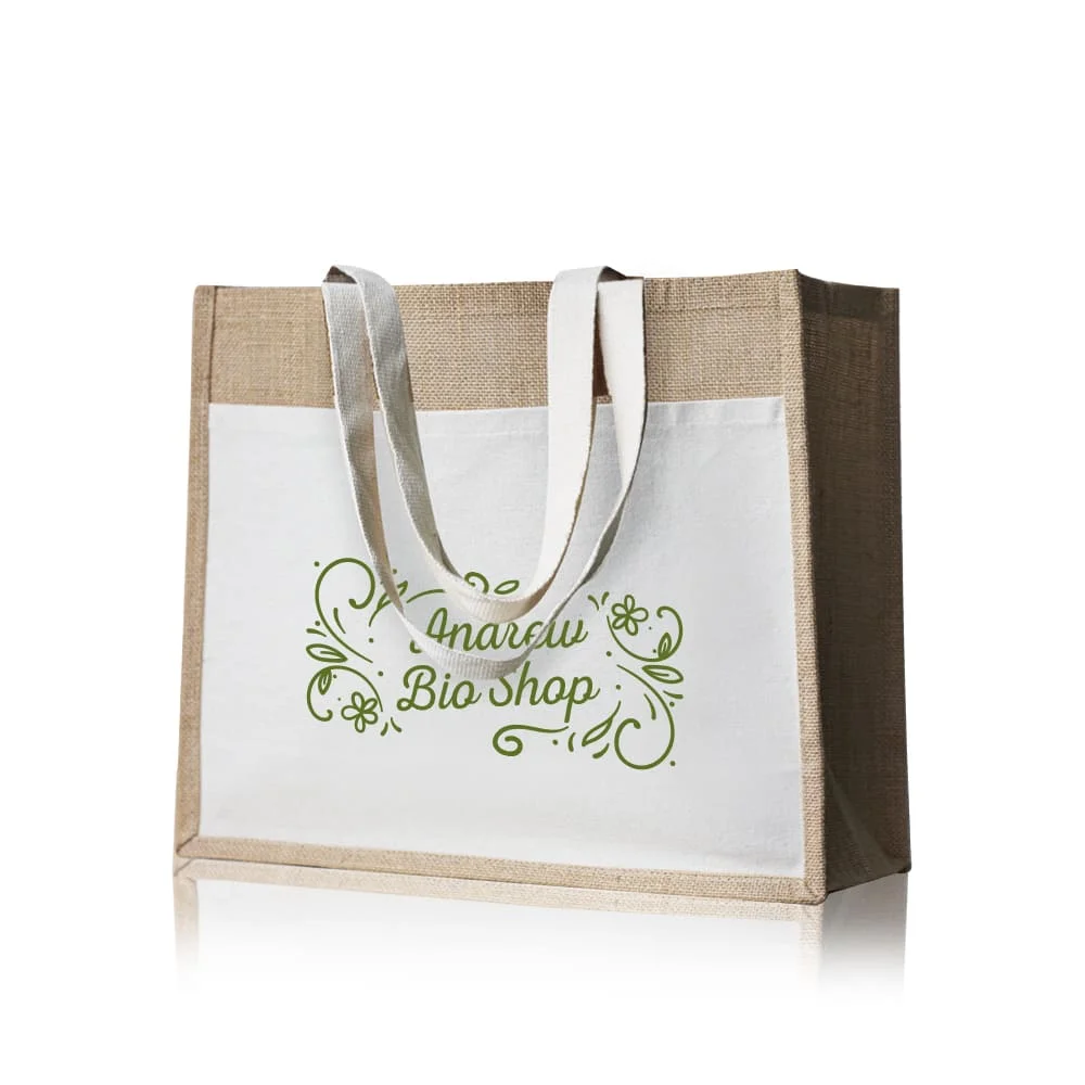 Saco em juta com bolsa frontal 100% algodão.